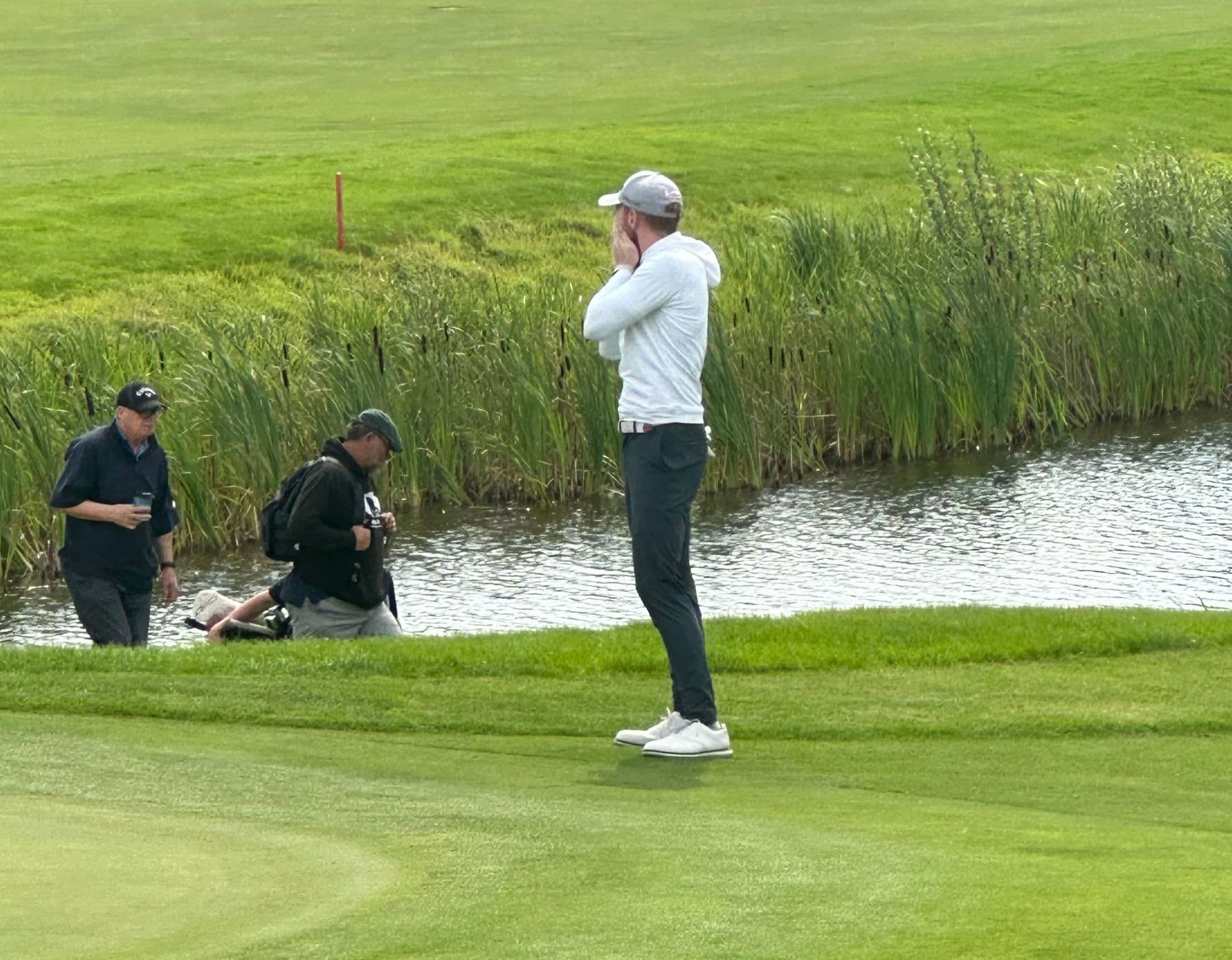 After the round, Murphy told me he made one of his best swings of the day with the 5-iron, but that the wind had switched as he hit or he and his caddie had misjudged the wind direction. The ball splashed in the water close to the bank.
