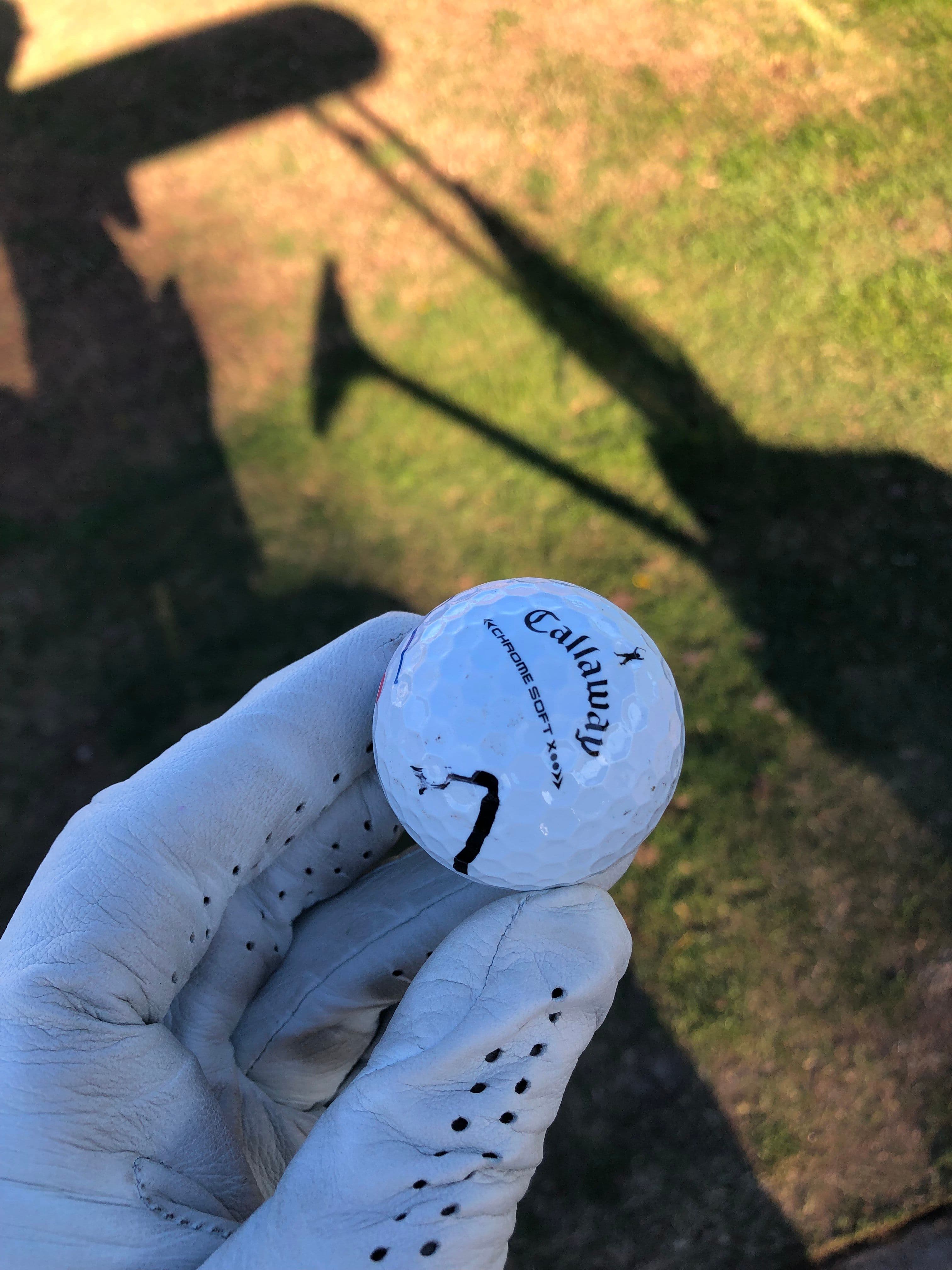 After I hit a handful of shots with each club, we turn on the cart headlights to scour the target area. After a minute, we find the 6-iron balls, but the 7-iron spheres are nowhere to be found.
