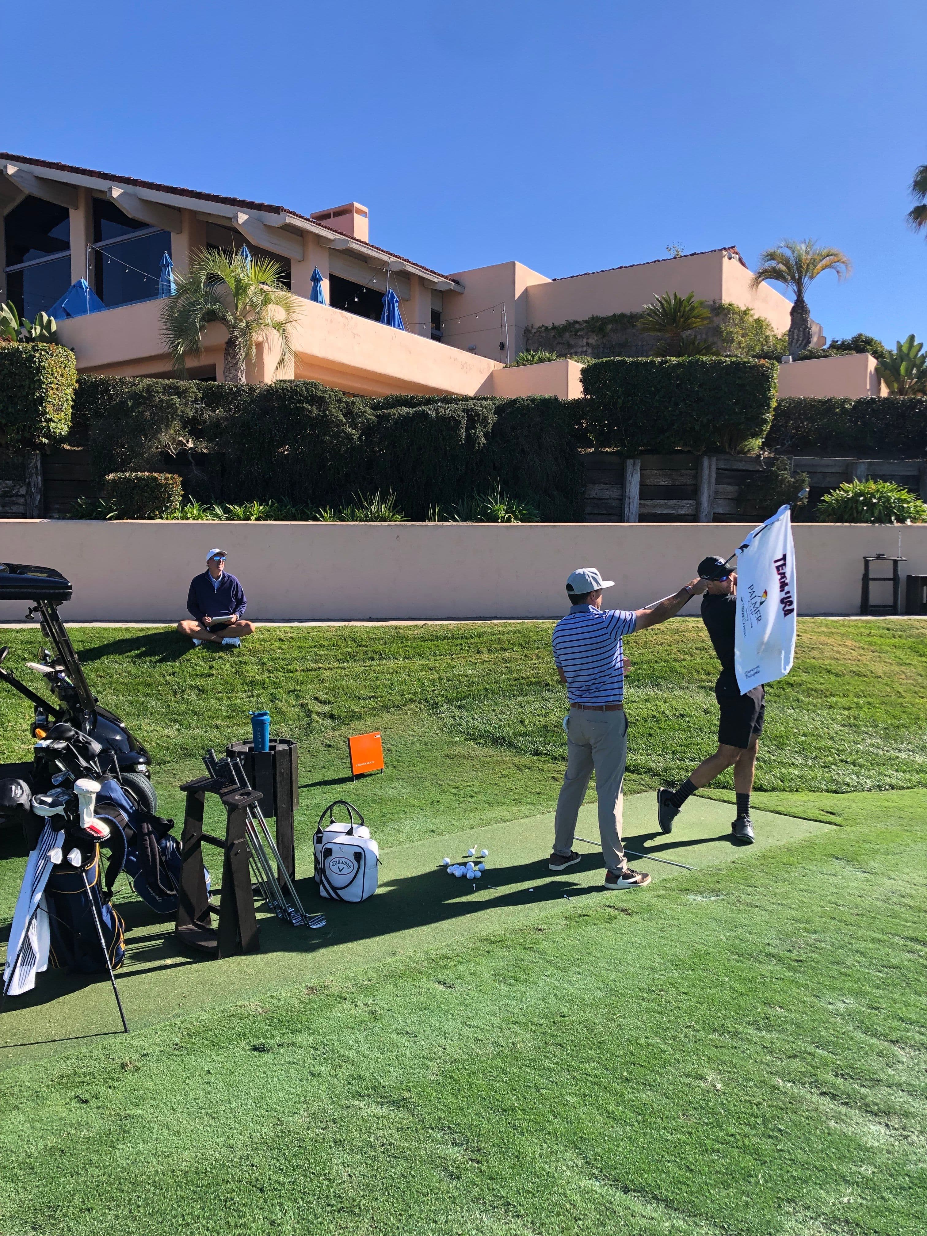 Back on the range, Fury tells me he thought my ball striking was impressive. But this is before he watches the next swing test, because Camo is putting on a clinic. I take a seat on the grass next to Mickelson, who can hardly contain his displeasure.