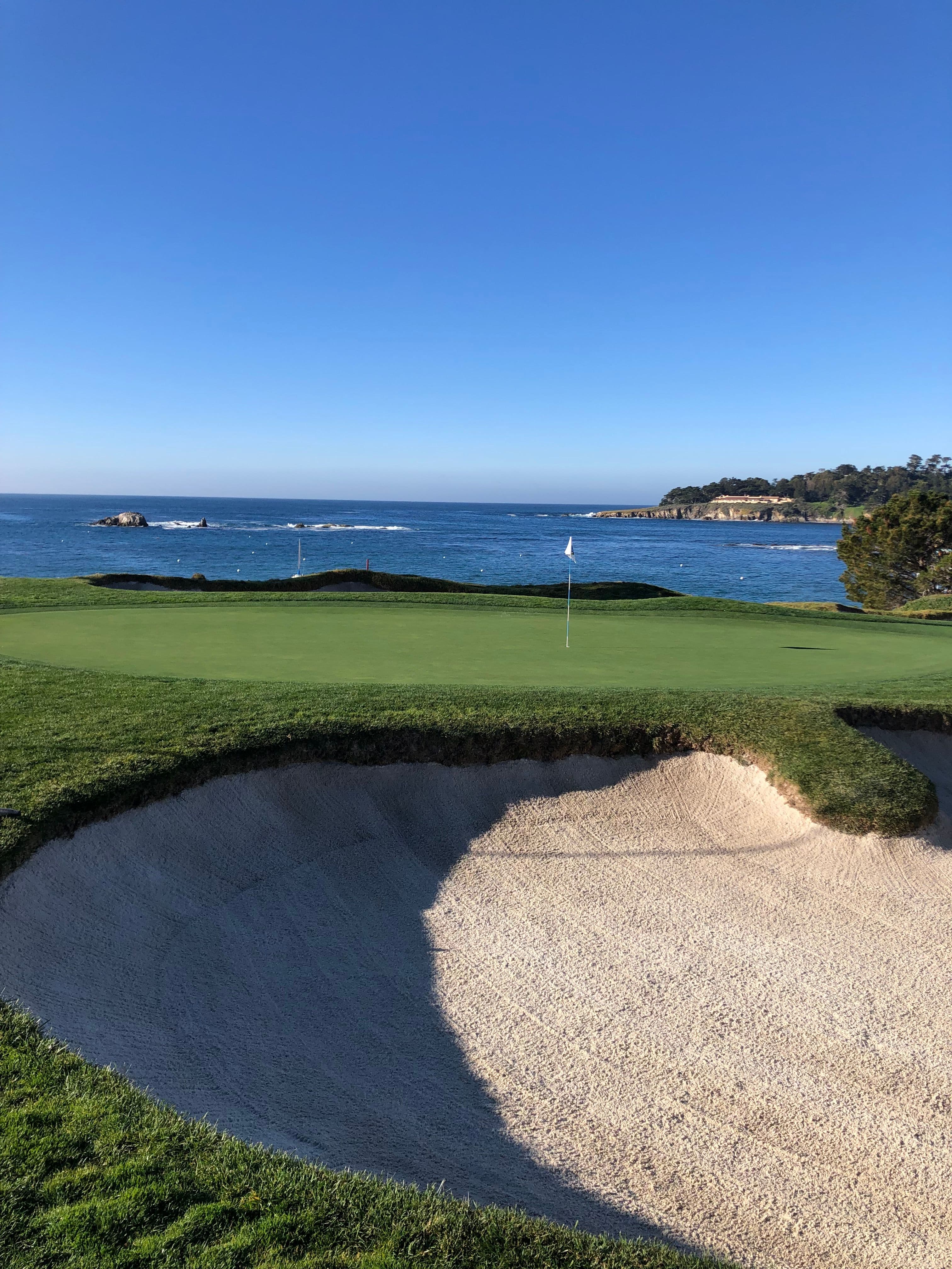 This is where the best walk in golf begins. After players cross a deep waste bunker and walk past a group of trees on the uphill par-4, they are greeted by their first glimpse of the sparkling Stillwater Cove. It’s one of the most stunning and serene views in all of golf. The approach shot is uphill to a narrow greens that funnels shots from both the right and left fringes toward the center. Having birdied this hole both days at the AT&T, it holds a special place in my heart.